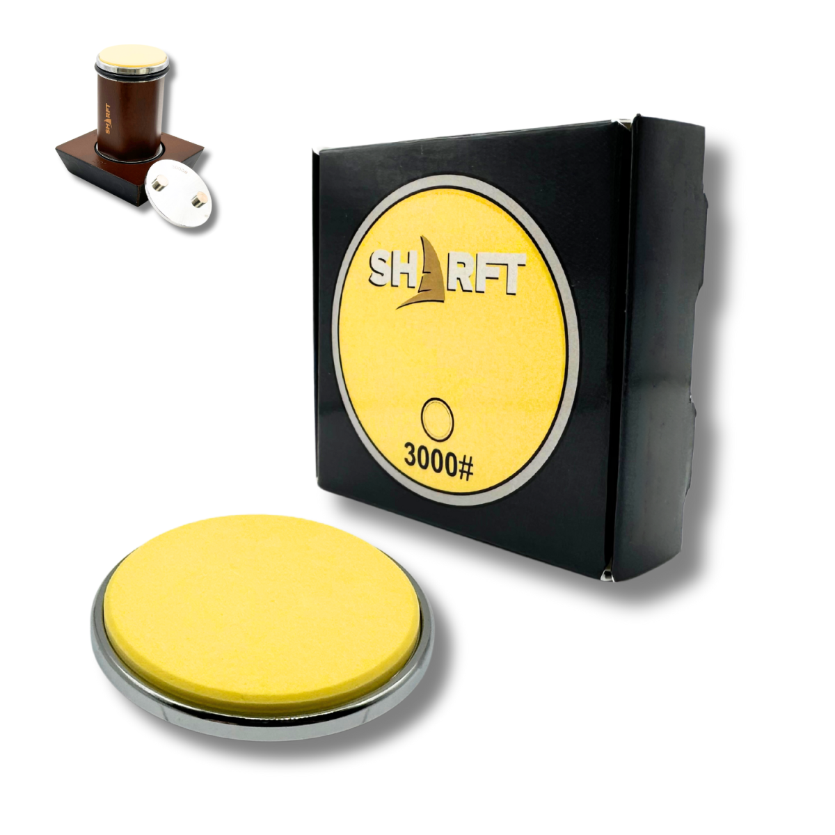 Trois disques en Corindon de 1000#, 3000# et 6000# pour lisser et augmenter la précision du tranchant.