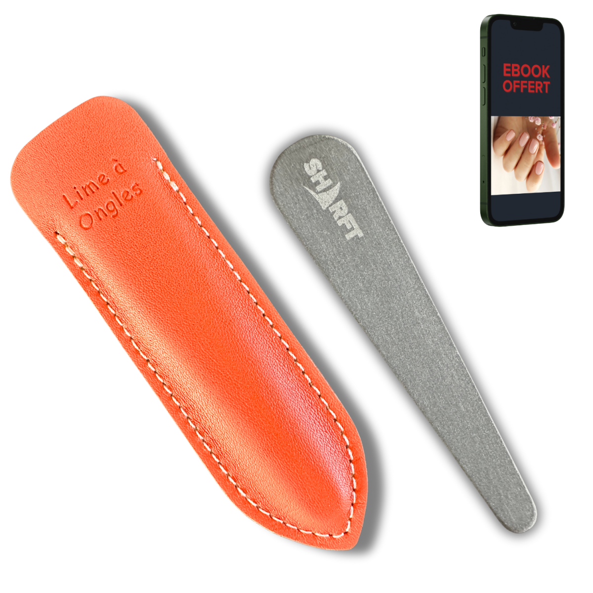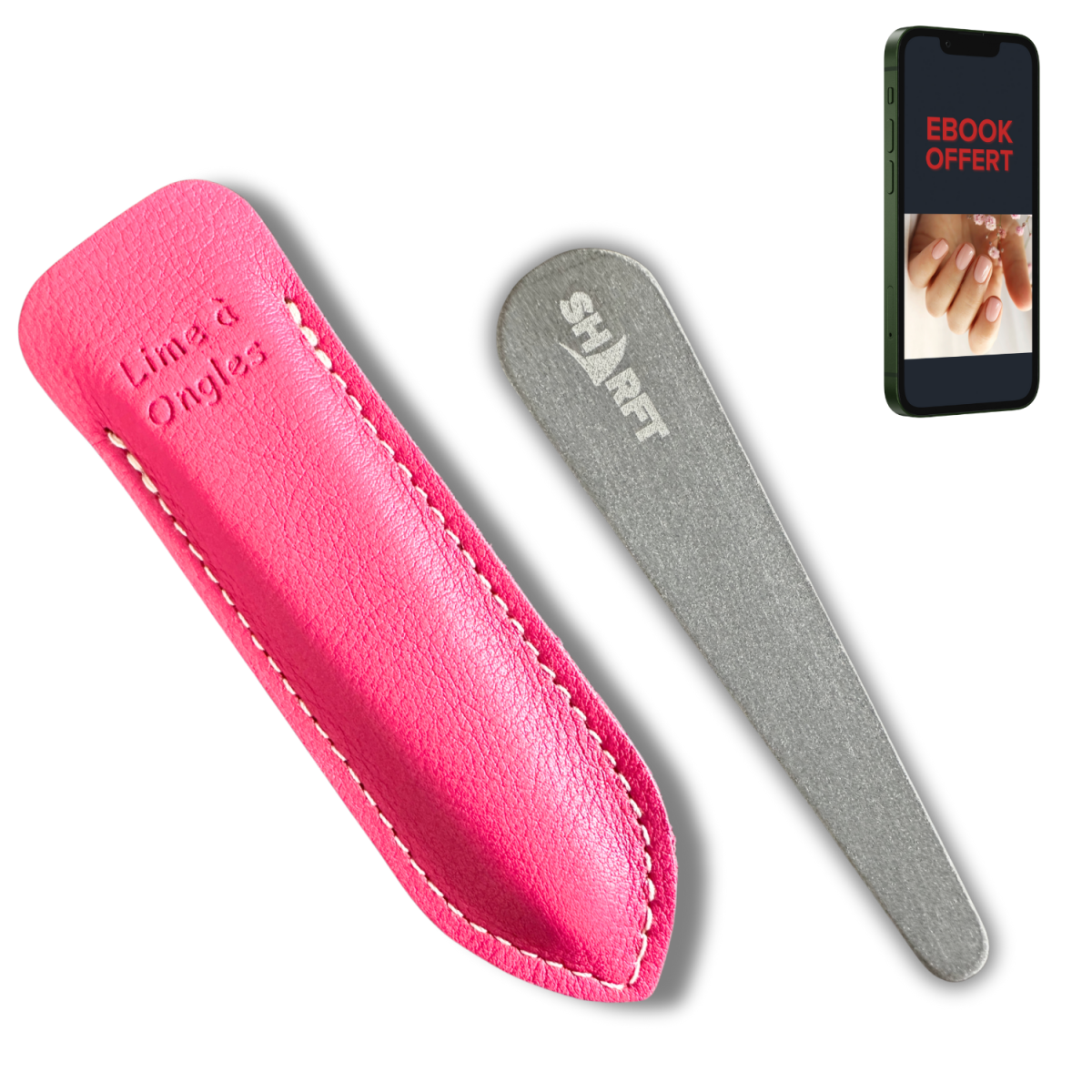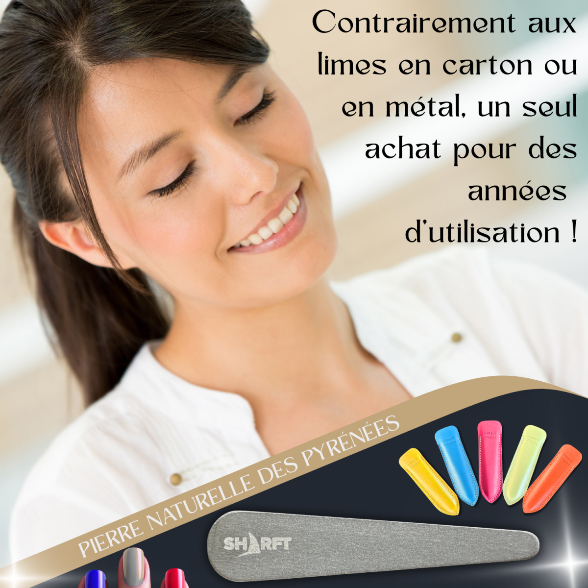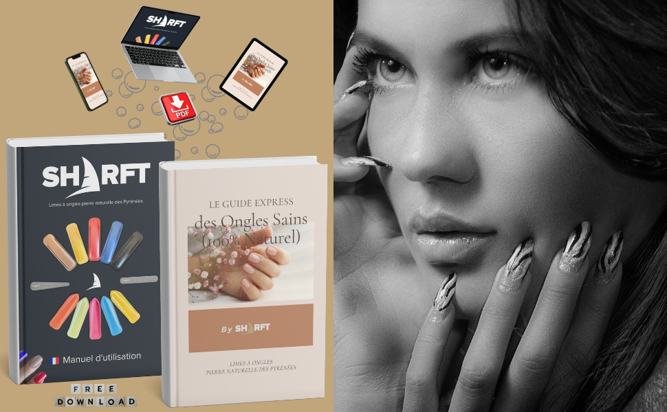 Manuel d'utilisation et Ebook Offert "Des Ongles Sains (100% Naturel) By SHARFT" à télécharger* pour tout achat d'une lime à Ongles Pierre Naturelle des Pyrénées SHARFT !
