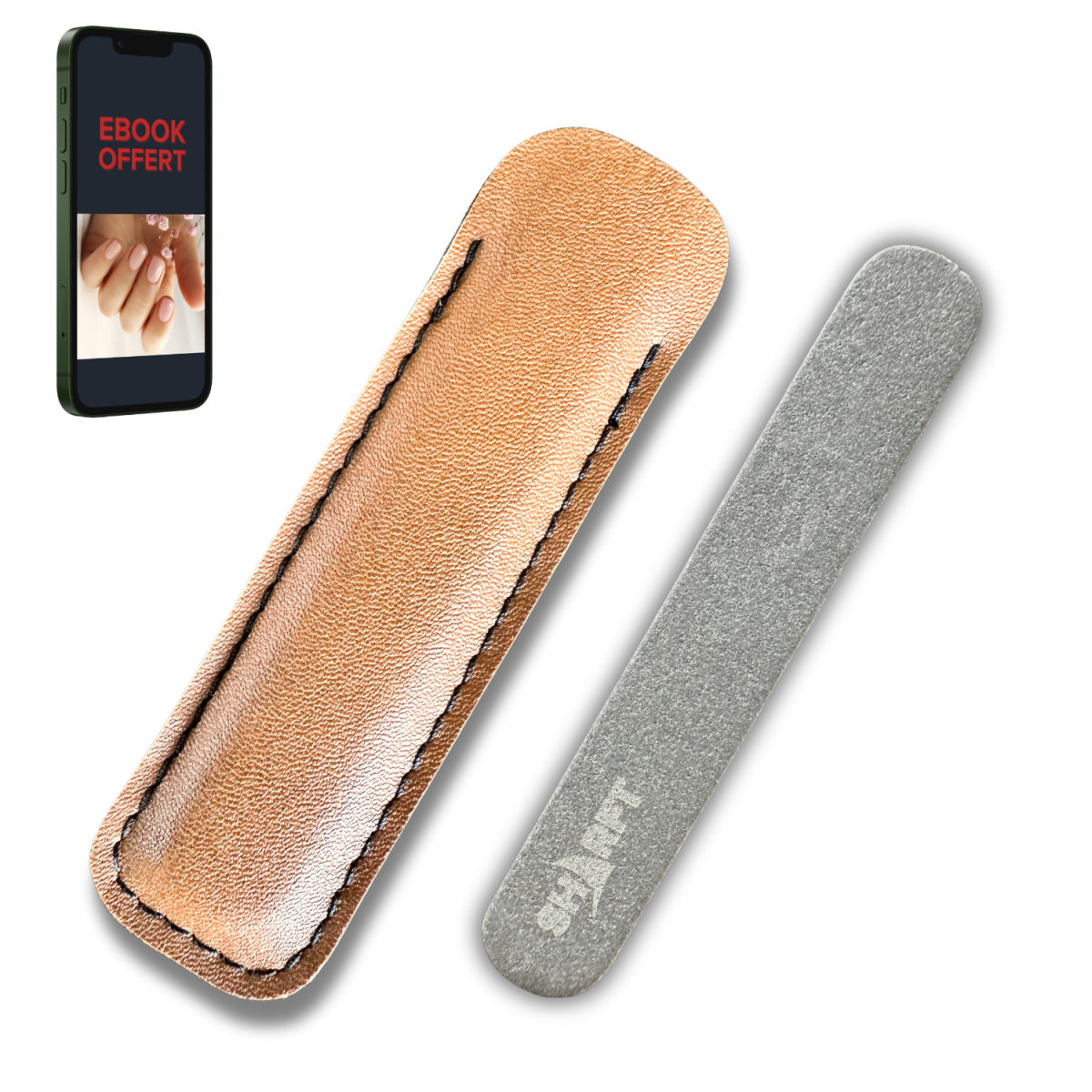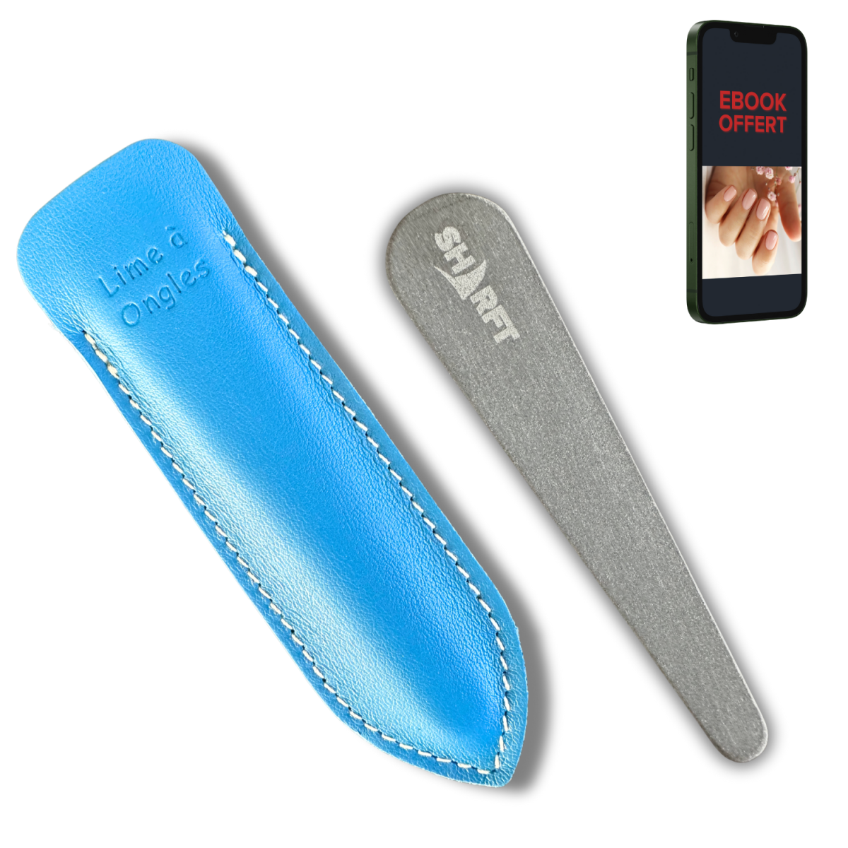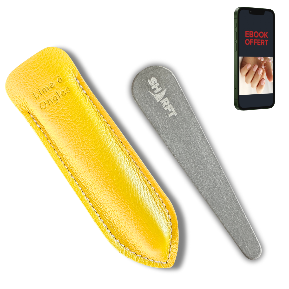Manuel d'utilisation et Ebook Offert "Des Ongles Sains (100% Naturel) By SHARFT" à télécharger* pour tout achat d'une lime à Ongles Pierre Naturelle des Pyrénées SHARFT !